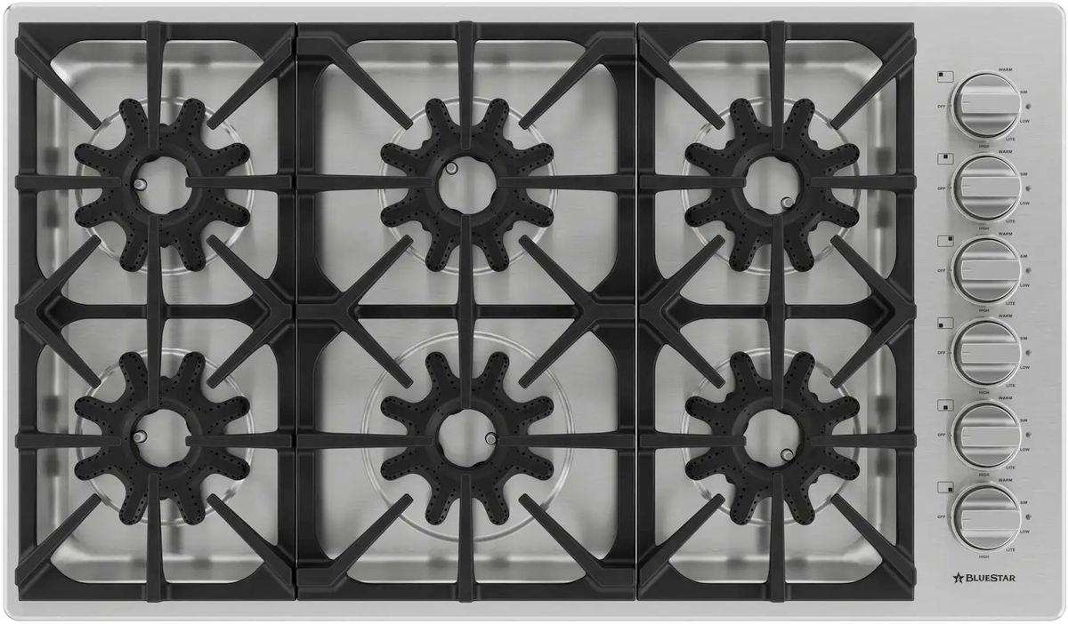The industry's most powerful gas cooktops are here – engineered for unrivaled cooking performance and maximum versatility. Cook with confidence on a spacious 36" surface featuring 6 burners that deliver an impressive 95,000 BTUs of power. BlueStar's exclusive X-8™ star-shaped sealed burner offers unmatched versatility and control on EVERY burner. A 25,000 BTU burner, plus 14,000 BTU burners, all go down to 500 BTUs.Read More