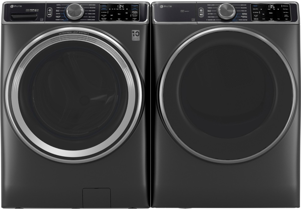 GE® Profile™ Carbon Graphite Front Load Washer and Electric Dryer Laundry Pair with 5.5 Cu Ft. Front Load Washer and 7.8 Cu Ft. Front Load Gas Dryer.Read More