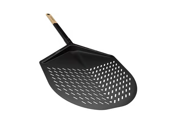 Next-level performance is effortless to handle with the Balance Placement Peel. Combining the lightweight aluminum blade with a comfortable Beech wood handle, this durable placement peel enables you to launch pizzas with greater ease and control. The blade is designed with a flat nose to increase stability and reduce rocking from side to side while sliding on or launching pizzas into the oven, so your pizza keeps its shape during transfer. The perforated metal lets excess flour fall through for delicious crust without the unwanted burnt taste. Designed to be ergonomic, the wood handle shifts the center of gravity closer to the hand for more control. The soft touch of the wooden handle is timeless and classic in its feel. Create pizza with confidence with the perfect balance of performance and ease. With hard anodized finish Smooth transition between the peel's surface and the hot stone floor These perforations also help steam escape from cooked baked goods, resulting in a crispier base
