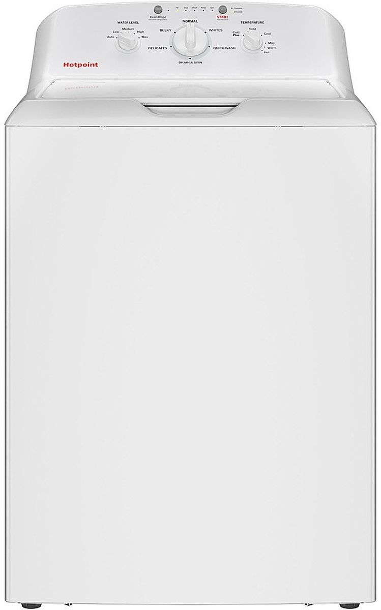 The Hotpoint 4.0 Cu. Ft. White Top Load Washer made to save time on laundry day with this large capacity washer that easily handles 15lbs of laundry and bulky items, while delivering great wash results.