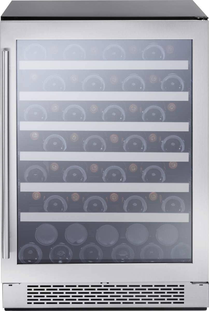 LuxeAir 5.6 Cu. Ft. Stainless Steel with Glass Single Zone Wine Cooler features electronic capacitive touch controls, 3-color LED lighting, and door open alarm.Read More