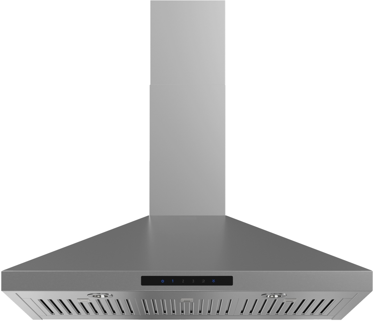 This model, with its pyramid shaped angles and stainless steel finish, makes a striking visual statement to any kitchen. Available in 30” or 36” widths, features Black panel touch controls, LED lighting and 3-speed blower.Read More