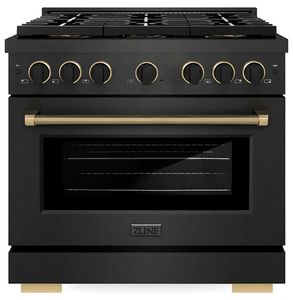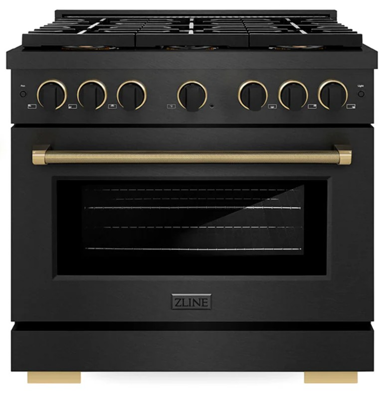 ZLINE Designer Collection - This limited release fuses an innovative Black Satin Stainless Steel base finish with detailed Matte Black and Champagne Bronze knob and handle accents to capture the essence of ZLINE’s design ethos of purposeful beauty paired with timeless functionality