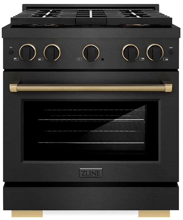 ZLINE Designer Collection - This limited release fuses an innovative Black Satin Stainless Steel base finish with detailed Matte Black and Champagne Bronze knob and handle accents to capture the essence of ZLINE’s design ethos of purposeful beauty paired with timeless functionality
